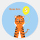 5th birthday tiger add name blue orange classic round sticker