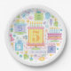 Any party treat will taste extra sweet on this pretty feminine paper party plate with the custom number 5  on whimsical birthday cakes and presents.