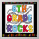 Colourful and fun black background with colourful design edge, musical notes, and multicolor text that reads "5th Grade Rocks" on 5th grade classroom posters the teacher will love!