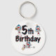 Three little sock monkeys wearing blue baseball caps are pitching, sliding, and up at bat on our Sock Monkey Baseball 5th Birthday design featuring sock monkeys and cool text that reads "5th Brithday".