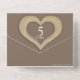 5th wedding anniversary party event with photo and detachable RSVP invitations can be sealed so no envelope is required. A simple wood chiseled effect heart printed graphics wedding anniversary invitations, personalize with your own wedding anniversary party details, a photo of the happy couple. Make it easy for you and your guests to send as no envelope is required simply handwrite on your sealed invitations and your guests can reply with the detachable rsvp and affixing a stamp for quick and easy guest responses. The fifth wedding anniversary is traditionally associated with wood and the heart symbolizes love. Other matching items are available. Graphics and design by Sarah Trett for www.mylittleeden.com and www.mylittleedenweddings.com