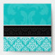 5x5 Turquoise Black & White Damask Lined Envelopes