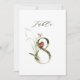 This table number card features a green and rose gold number decorated with watercolor illustrations of flowers and leaves in blush pink, red, and green. This table number is perfect for weddings, graduations, baby showers, bridal showers, anniversaries, and other events.