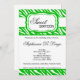 This 5x7 Sized adorable Green and White Zebra Print Fabric Pattern Sweet 16 Sixteen Birthday Party Invitation is both trendy and chic. It's printed on smooth, vibrant, matte 110lb cover weight paper. Contains 50% recycled content. Perfect for your most formal invitations and event announcements. These come with standard white envelopes.