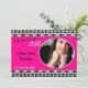 This 5x7 Sized adorable Elegant and Chic Hot Pink Black Damask Photo Senior Announcement is both trendy and chic. It's printed on smooth, vibrant, matte 110lb cover weight paper. Contains 50% recycled content. Perfect for your most formal invitations and event announcements. These come with standard white envelopes.