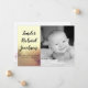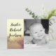 This 5x7 Sized adorable Photo Birth Announcement is both trendy and chic. It's printed on smooth, vibrant, matte 110lb cover weight paper. Contains 50% recycled content. Perfect for your most formal invitations and event announcements. These come with standard white envelopes.