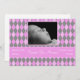5x7 Pink Argyle Pattern Photo Birth Announcement