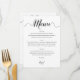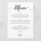 This black and white wedding menu is the perfect accessory for any wedding table. Please see my Zazzle store for the matching seating chart and table numbers.