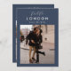 Add a special finishing touch to your wedding reception tables with these custom photo table number cards. Name each table after a memorable travel destination and add a photo and the destination name to these unique card holders. Your photo is aligned at the bottom, with the location name and your initials and wedding date centred at the top on a navy blue background.
