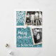 5x7 XMAS Christmas Blue Glitter Snowfl PHOTO Card
