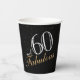Elegant 60 and Fabulous White Script Birthday Paper Cups. Elegant design with trendy script in white and golden colours for a woman.