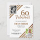 60 and Fabulous Gold Glitter 2 Photo 60th Birthday Surprise Party Invitation. Modern and elegant faux golden glitter birthday invitation for her. Add your photos - you can use an old and a new photo. You can change all the text.