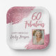60 and Fabulous Pink Glitter Photo 60th Birthday Paper Plate