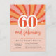 Add a trendy, retro-inspired vibe to your sixty years party with these 60th birthday invitations. Featuring a vibrant retro design and easy to customise with all the celebration details. Peach, pink and red background swirl with the text: "60 and fabulous! Join the celebrations for (name's) birthday".