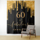 A trendy and glamourous 60th birthday tapestry. A classic black background decorated with faux gold glitter drips, paint dripping look. With the text: 60 and fabulous. Personalise and add a name. Golden coloured text.  The word Fabulous is written with a modern hand lettered style script with swashes.  Can be used as a welcome banner, party wall decor or as a fotobooth backdrop.