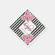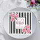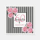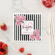 A napkin for a 60th and fabulous birthday party. Classic slim black and white vertical stripes as background. With girly and feminine pink roses as decoration.
