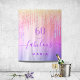 A trendy and glamourous 60th birthday tapestry. A rainbow coloured background in purple, violet, pink and gold decorated with faux glitter drips, paint dripping look. With the text: 60 and fabulous. Personalise and add a name. Purple coloured text. The word Fabulous is written with a modern hand lettered style script with swashes.