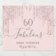 Simple and elegant 60th birthday wine label. A feminine rose gold, blush pink background decorated with rose gold faux glitter drips, paint dripping look. With the text: 60 and fabulous. Personalise and add a name and a date. Date of birth or the date of the party. Grey text. The word Fabulous is written with a modern hand lettered style script with swashes.