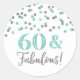 60 & Fabulous Birthday Silver Turquoise Confetti Classic Round Sticker