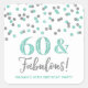 60 & Fabulous Birthday Silver Turquoise Confetti Square Sticker