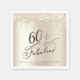 Elegant and chic personalised 60th birthday party napkins featuring "60 & Fabulous" written in stylish script against a champagne gold faux foil background, with gold faux glitter dripping from the top. You can personalise with her name and date of the party.