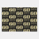 Easy to customise gold elegant script "60 & Looking Good" oversized birthday coordinating wrapping paper sheets for any 60th birthday. The personalised name  is in gold on a classic black background.