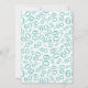 The front has text templates for Who, What, Where, When, and RSVP. It is framed around the edge with the same number pattern as the back, only the colours are reversed.