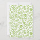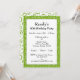The front has text templates for Who, What, Where, When, and RSVP. It is framed around the edge with the same number pattern as the back, only the colours are reversed.