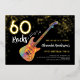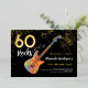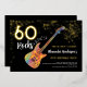 60 Rocks with this cool rock music themed 60th birthday party modern invitation. Rock and roll colourful funky electric guitar with gold glitter and musical note illustrations with personalised gold modern calligraphy typography on a black background. This easy to use template creates the perfect personalised invitation to celebrate sixty in rockstar style. Perfect if you have a live band or are a guitarist, musician and music lover. Unique multicolored psychedelic musical instrument original artwork by artist Catherine Sweetman