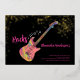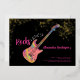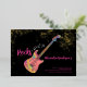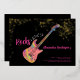 60 Rocks with this cool rock music themed 60th birthday party modern bright pink, black and gold glitter invitation. Rock and roll pink colourful psychedelic electric guitar with gold glitter and musical note illustrations with personalised gold modern calligraphy typography on a black background. This easy to use template creates the perfect personalised invitation to celebrate sixty in rockstar style. Perfect if you have a live music band or are a guitarist, musician and music lover. Unique musical instrument original artwork by artist Catherine Sweetman
