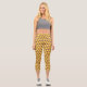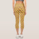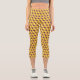 Ladies Capri Leggings in a retro style pattern of orange, yellow, and purple rows. A repeat pattern of reflective ovals creates a bold nostalgic design.