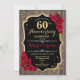 60th Wedding Anniversary Invitation. Rustic elegant invite card dark brown wood pattern, with faux glitter gold and red roses. Printed invitations or digital template. Perfect for a stylish 60 years of marriage celebration.
