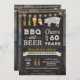 Barbecue and Beer 60th Birthday Invitation featuring chalk board and lettering with customisable age.