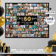 Create a 60th birthday photo memory display poster print utilising this easy-to-upload photo collage template with 108 pictures in various sizes to accommodate pictures of her or him through the years for a fun birthday sign or party decoration and commemorative keepsake. The design features the title CHEERS TO 60 YEARS with gold foil balloon numbers and your custom text (the sample says HAPPY BIRTHDAY NAME) in your choice of text of font styles and colours as well as background colour (shown in black). OPTIONS: The sample is shown in a 36x29" size on Value Paper (Matte); other standard and custom print sizes and paper quality, Instant Digital Download file for printing locally or transferring the design to a foam board, banner, canvas or other product options are available on the ordering page. RESIZING TIP: Choose Custom Size for even borders by changing the height and width proportionately AFTER clicking the UNLOCK icon (looks like a chain link). ASSISTANCE: For help with design modification or personalisation, colour change, resizing or transferring the design, contact the designer BEFORE ORDERING via the Zazzle Chat MESSAGE tab or email makeitaboutyoustore@gmail.com.