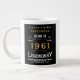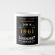 For those born in 1961 and celebrating birthday we have the ideal birthday giant coffee mug. The black background with a white and gold vintage typography design design is simple and yet elegant with a retro feel. Easily customise the text of this birthday gift using the template provided. More gifts and party supplies available with the "Legendary" design in the store.