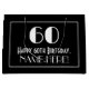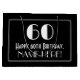 This vintage look 1920s-1930s style inspired birthday themed giftbag design features a large art deco look inspired number "60", the message "Happy 60th Birthday,", a customisable name, and a border pattern consisting of thin lines. The background is coloured black. A gift bag like this might be used when giving a gift or present in honour of somebody’s 60th birthday. [~Z0000496]