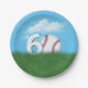 A white baseball in green grass, blue sky, and clouds for a 60th birthday.