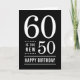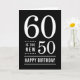 This humourous 60th birthday card features the words "60 is the new 50 Happy Birthday" in white against a black background.