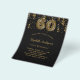A modern, stylish and glamourous invitation for a 60th birthday party. A black background, decorated with confetti. The name is written with a modern hand lettered style script. Personalise and add your party details. Number 60 is written with a trendy balloon style font, leopard pattern.