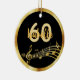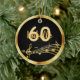 Black background with faux gold music notes for a 60th birthday party. With a faux gold frame. Templates for age and name. The name is written in a hand-lettered style script. Golden letters and number. For both him and her. Great as a birthday gift or a keepsake.