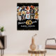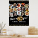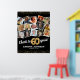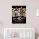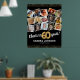 Elegant 60th birthday party poster featuring a stylish black background that can be changed to any colour, a 15 photo collage through the years, the saying 'cheers to 60 years', gold glitter edges, their name, and the date of the celebration.