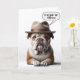 A bulldog is sitting calmly while wearing a stylish fedora hat isolated on a white background for an 60th birthday.