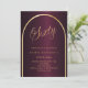 An elegant 60th birthday invitation. A burgundy background with a golden arch on the front.