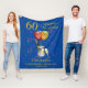 A stylish 60th Happy birthday age blanket. Features a champagne bucket glasses and balloons and confetti all on a blue background with gold coloured text. Perfect as a gift to celebrate a 60th birthday, something that they can cherish and snuggle up with, Can be customise by amending the titles and age then personalise by adding the name a short message and date of birth or 60th birthday date to make this a truly unique and personal gift. Background colour can be changed if needed, just click on the personalise further button.