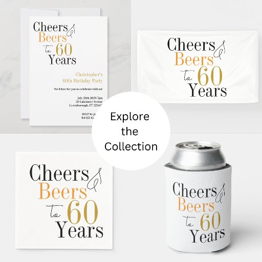 60th Birthday Party Cheers and Beers Minimal PartyDesigned by Only The Moon