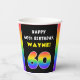 60th Birthday: Colourful Rainbow # 60, Custom Name Paper Cups