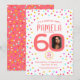 60th birthday custom photo living coral confetti invitation