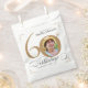 60th Birthday Elegant Gold White Calligraphy Photo Favour Bag. And elegantly designed special birthday celebration, featuring a custom photo of birthday person and script calligraphy with vintage flourish elements. Simple enough to fit a variety of themes and colours!