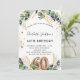 For a 60th birthday party. A white background decorated with eucalyptus greenery and golden leaves. Golden faux glitter spots. Personalise and add your names and wedding details. Black and golden coloured letters. Number 60 is written with balloon style font.