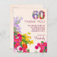 Celebrate a milestone birthday with this beautifully designed 60th birthday thank you card, featuring vibrant floral accents and an elegant "60" graphic. This card offers a heartfelt way to express gratitude to friends and family for their presence and generous gifts on this special occasion. The floral border adds charm, while the customisable text ensures a personal touch. Ideal for those who want a memorable and elegant way to say "thank you" after a 60th birthday celebration. Enjoy!